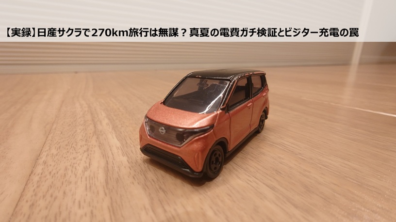 現在、我が家では通勤専用車として軽EV「日産サクラ」を愛用しています。今回は、このサクラで真夏の8月に往復270kmの一泊二日小旅行に挑戦してみました。